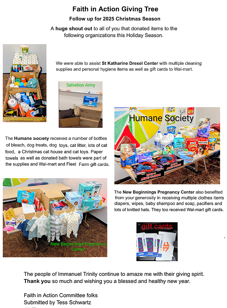 Home Seek New Member Info Forms Baptism/Wedding/ Funeral Contact Us Interior Layout of Immanuel-Trinity Church Serve Gods Work, Our Hands Mission/Outreach DVD Ministry Loaves and Fishes Faith in Action Thanksgiving Dinner Women of the ELCA Chancel Guild Deborah Circle Dorcas Circle Boy Scouts-Troop 701 Worship Volunteer Sign Up Brown Bag Lunch Program Share SERMON STUDY Prayer Chain Who We Are Meet our Staff Our Church Council 2025 Council Minutes Christian Education Program - 2025-2026 Media Weekly Bulletin The BEACON Contact I-T ONLINE GIVING Church Calendar Highlights extra Links Baptism Information Form BUILDING USAGE REQUEST Highlights Videos Faith in Action Serve Gods Work, Our Hands Mission/Outreach Loaves and Fishes Faith in Action Thanksgiving Dinner Women of the ELCA Chancel Guild Deborah Circle Dorcas Circle Worship Volunteer Sign Up Communion Assistant Brown Bag Lunch Program